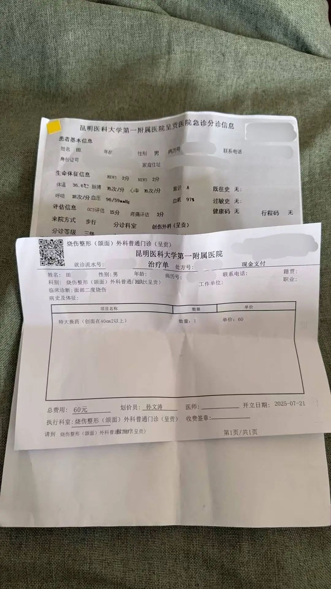 被确诊为面部二度烧伤