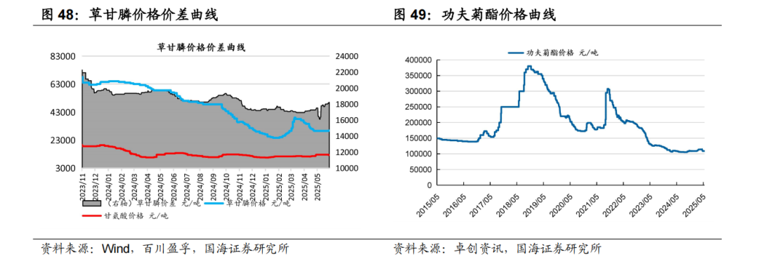 据Wind和百川盈孚,2025年6月13日功夫菊酯原药价格为10.7万元/吨,较6月6日持平;联苯菊酯原药价格为12.9万元/吨,较6月6日持平;草甘膦原药价格为2.40万元/吨,较6月6日上涨0.03万元/吨。