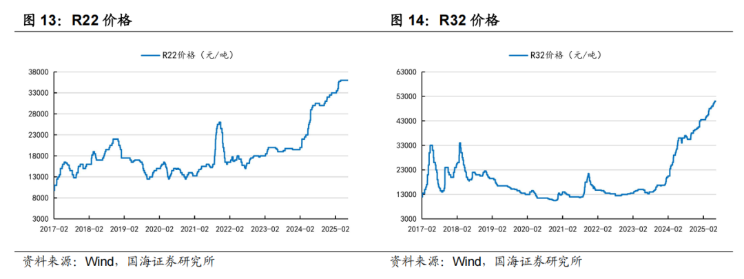 据卓创资讯,6月13日,萤石市场均价3250元/吨,环比6月6日持平。6月13日,制冷剂R22的市场均价为34500元/吨,环比6月6日持平;制冷剂R32的市场均价为52000元/吨,环比6月6日增加500元/吨;制冷剂R125的市场均价为45500元/吨,环比6月6日持平;制冷剂R134a的市场均价为48500元/吨,环比6月6日持平。