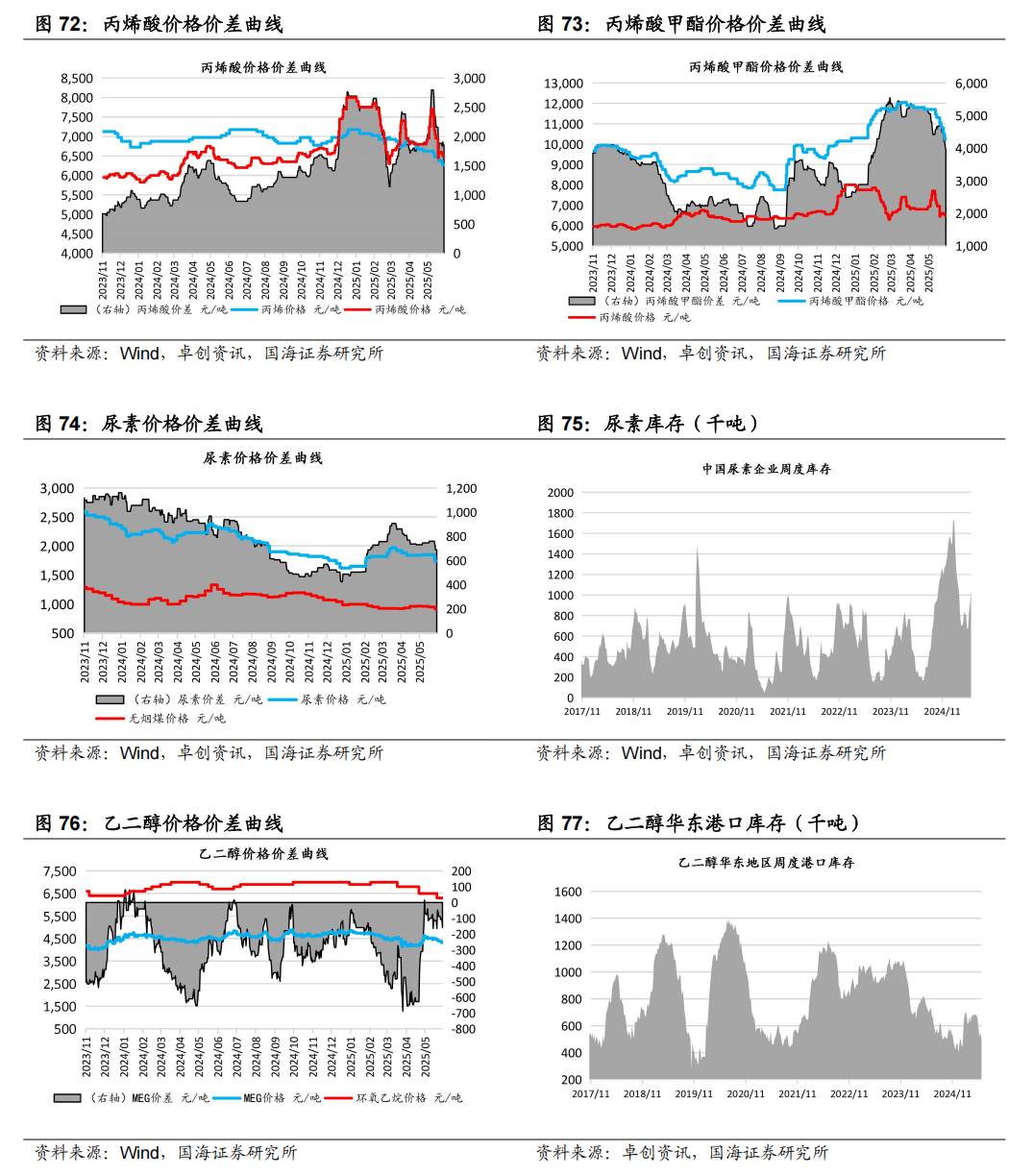 本周国内尿素价格持续下行。周内市场核心矛盾仍在高供应与弱需求的持续博弈。农业刚需释放缓慢,工业需求延续萎缩,出口端亦未现实质性利好,三重压力导致下游采购意愿低迷,“买涨不买跌”心态进一步抑制成交放量。企业为缓解库存压力持续降价吸单,但收单效果普遍不佳。政策层面,关于出口港检的会议未释放松动信号,叠加尿素期货全周持续下行,双重利空加剧现货市场看空氛围。综合来看,市场缺乏利好支撑,尿素价格下行压力不减。本周国内丙烯市场价格弱势走跌。周内贸易局势缓和及地缘局势紧张,国际油价宽幅上行;供需宽松延续,丙烷价格低位震荡,甲醇市场偏强整理。山东市场丙烯价格偏弱震荡。东北区域某环氧丙烷装置降负,西北区域某聚丙烯装置停车,整体需求寡淡,采购量有限,企业成交偏弱,叠加外围市场走弱,均利空牵制东北及西北市场价格重心走低。本周国内纯碱现货市场价格持续下行。周内江苏、河南、青海、内蒙古、宁夏等区域部分碱厂报盘价格逐步下调,纯碱期货盘面震荡偏弱,难以为现货市场提供有效支撑,近期江苏、山东碱厂装置逐步恢复生产,纯碱市场货源供应充裕,且下游需求端市场气氛亦显不佳,中下游采购压价心理明显,碱厂出货竞争愈加激烈,整体看来,纯碱现货市场利好支撑难觅,市场价格步入下行通道,场内供需矛盾难以扭转,市场成交多实单商谈。