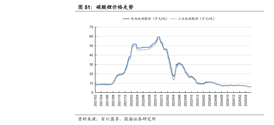 根据百川盈孚,2025年6月13日电池级碳酸锂均价6.07万元/吨,环比6月6日上升150元/吨。